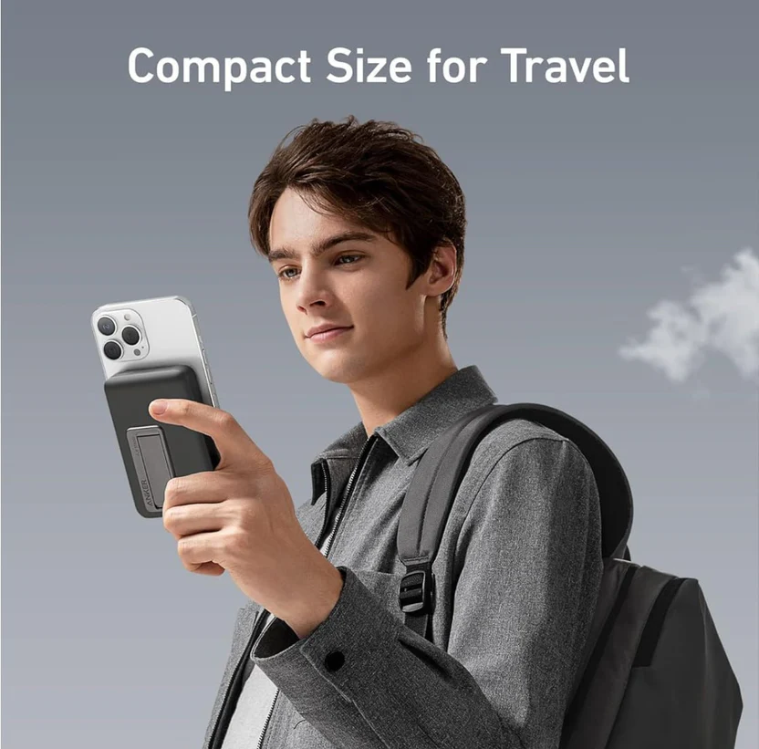 باور بانك مغناطيسي لاسلكي ANKER 10000MAH، شحن سريع 20W، حامل مدمج، معتمد للطيران، حجم صغير للسفر، متوافق مع آيفون