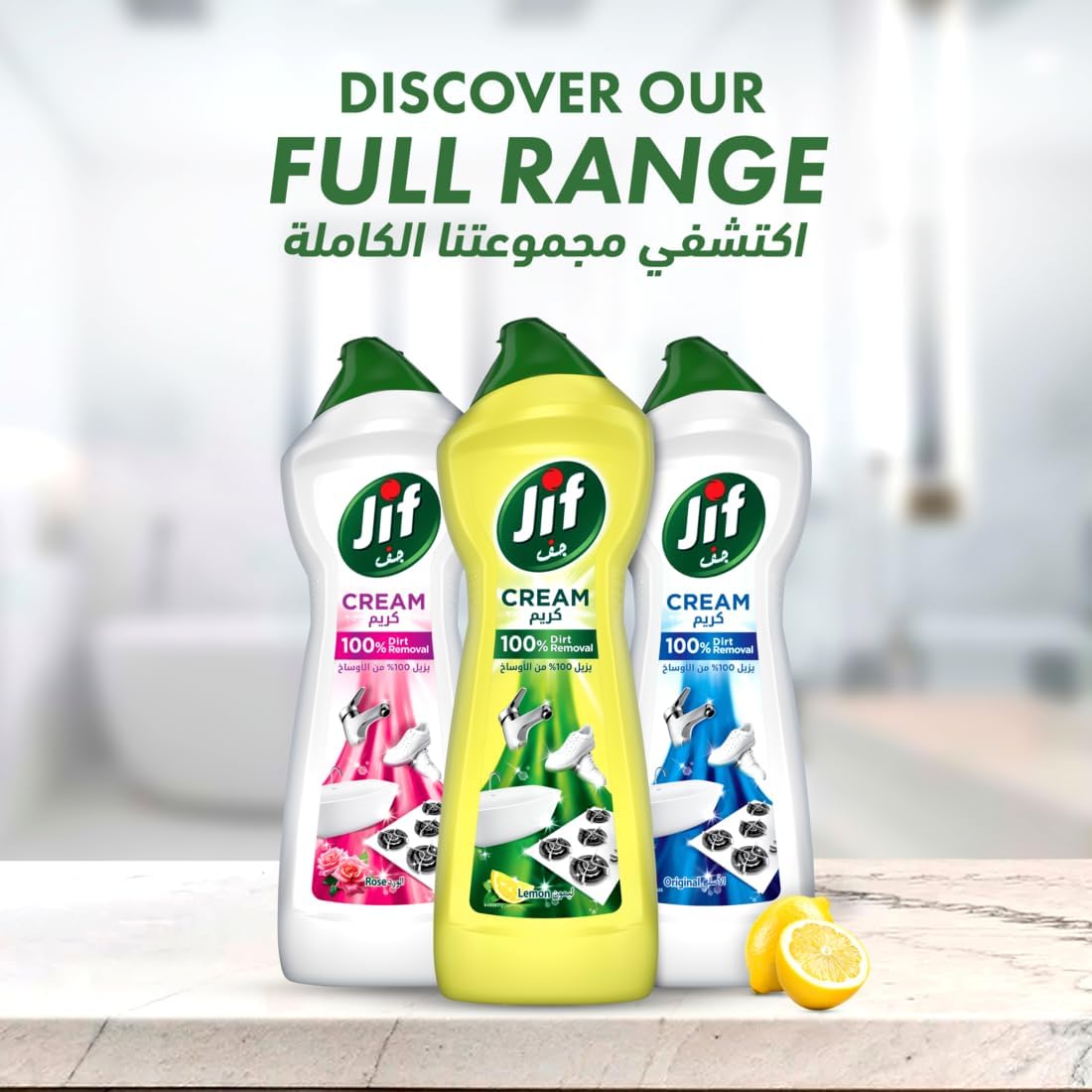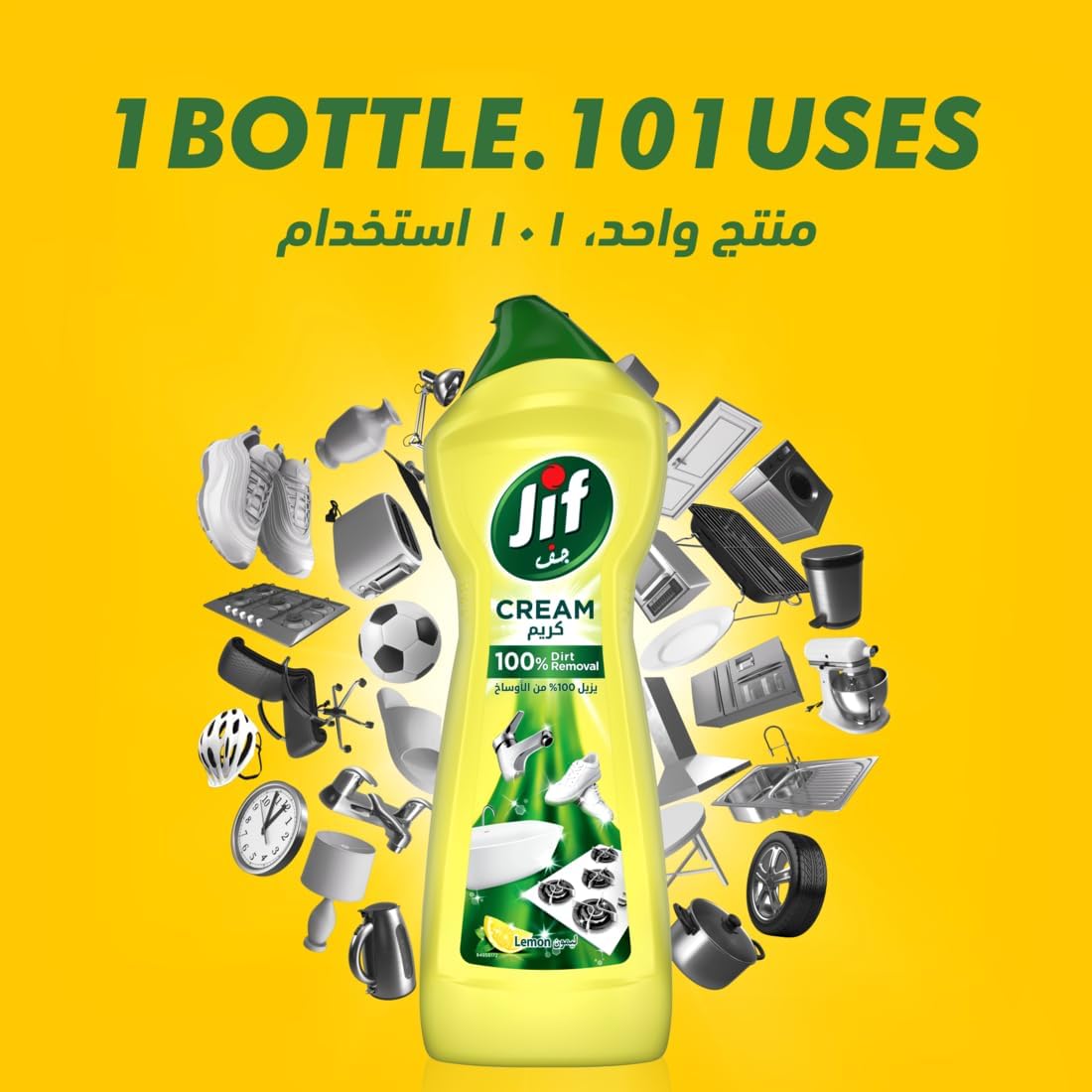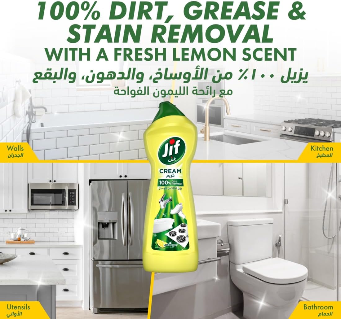 جيف منظف كريمي، بتقنية البلورات الدقيقة، الليمون، يزيل الشحوم والطعام المحترق وبقع الترسبات الكلسية، 4 × 500 مل