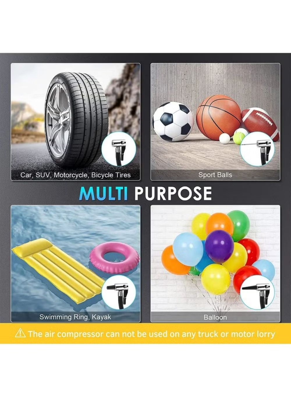 منفاخ إطارات السيارة الرقمي ضاغط هواء مع توقف تلقائي وإضاءة LED 12 فولت مضخة هواء محمولة سريعة للسيارة والدراجة النارية ومرتبة هوائية كروية